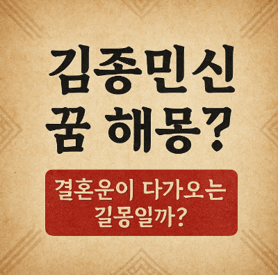 김종민 신부 꿈은 단순한 연예인 꿈이 아니라, 결혼운과 인연운을 암시하는 중요한 메시지일 수 있습니다. 꿈에서 느낀 감정과 상황을 잘 기억해두고, 앞으로 다가올 변화를 준비하세요. 김종민 신부 꿈이 당신에게 좋은 소식을 가져다주는 길몽이길 바랍니다.