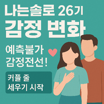 나는솔로 26기의 진정한 묘미는 예측 불가능한 반전에 있습니다. 첫인상에서 0표를 받았던 출연자가 마지막에 커플이 되는 경우도 많았죠. 현재까지의 흐름을 보면, 옥순이나 영호처럼 소외된 듯한 인물이 후반부 반전의 주인공이 될 가능성이 큽니다.