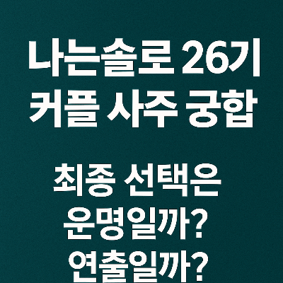 나는솔로 26기는 단순한 리얼리티 쇼를 넘어, 운명의 선택을 보여주는 예능입니다. 이번 시즌 커플들의 사주 궁합을 분석해보면, 감정의 흐름과 실제 선택이 얼마나 자연스럽게 맞아떨어지는지를 알 수 있습니다.