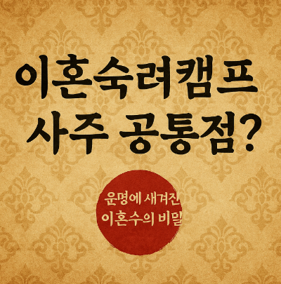 이혼숙려캠프와 사주 상담을 함께 받는 사람들이 많아지면서, '이혼수가 있으면 무조건 이혼하나요?'라는 질문이 자주 나옵니다. 결론부터 말하면, 이혼수가 있다고 해서 반드시 이혼하는 것은 아닙니다. 이혼숙려캠프는 이런 위기를 극복할 수 있는 방법을 찾기 위한 자리이기도 합니다.
