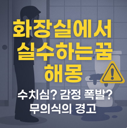 화장실에서 실수하는 꿈은 내 감정이 넘치고 있다는 신호입니다. 수치심을 넘어, 스스로를 보호하고 회복할 필요가 있다는 무의식의 외침일 수 있습니다.