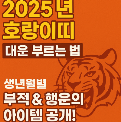 호랑이띠는 타고난 리더십과 추진력을 지녔지만, 때때로 성급함과 고집이 발목을 잡기도 합니다. 2025년 을사의 해에는 기회가 많아지는 만큼 **신중한 판단**과 **행운 아이템**의 도움으로 흐름을 잡는 것이 중요합니다.