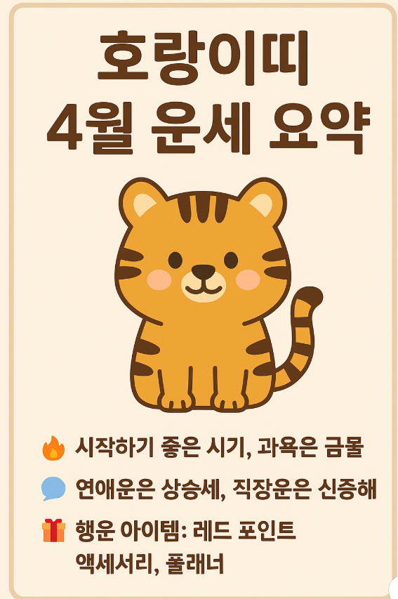 카테고리 없음 2025년 4월 19일 호랑이띠 운세 – 출생연도별로 오늘의 기운을 읽어보세요! by 팔자피자 2025. 4. 18. 반응형 반응형 공유하기 게시글 관리 해몽백과300