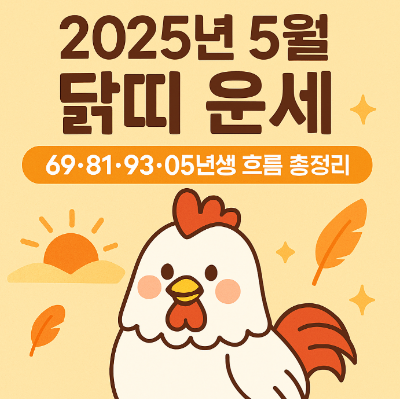 2025년 5월 닭띠 운세 – 69년생, 81년생, 93년생, 05년생 생년별 흐름 총정리