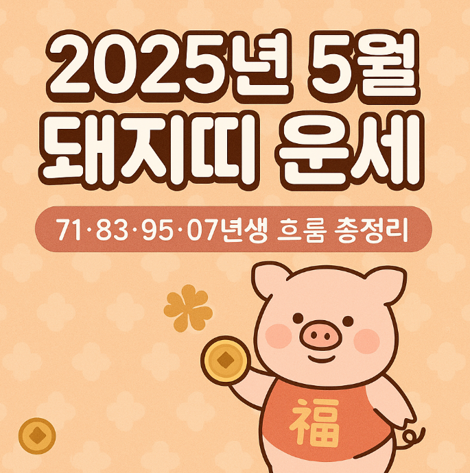 2025년 5월 돼지띠 운세 – 71년생, 83년생, 95년생, 07년생 생년별 흐름 총정리